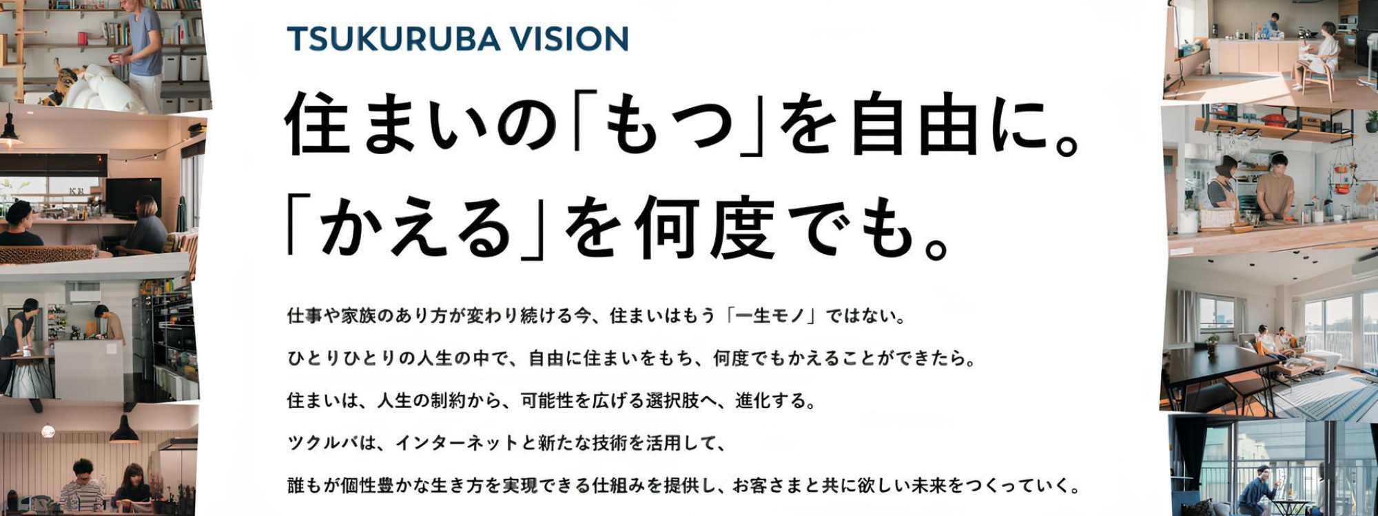 仕事や家族のあり方が変化し続ける今、 住まいはもう「一生モノ」ではない。 ひとりひとりの人生の中で、 自由に住まいをもち、 何度でもかえることができたら。 住まいは、人生の制約から、 可能性を広げる選択肢へ、進化する。