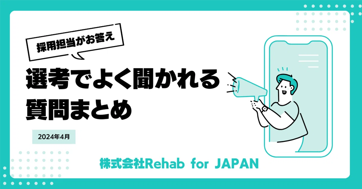 https://note.rehabforjapan.com/n/n27bdb5cb5b09 キャリアチェンジをお考えの方のお役に立てるよう、選考の中で候補者の方からよくご質問いただく項目をまとめてみました。