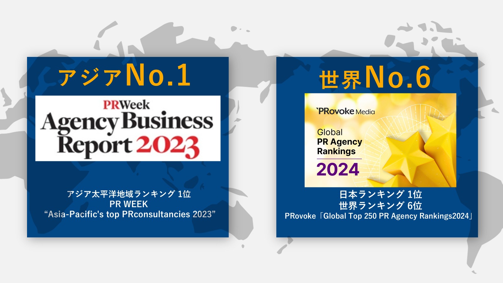 PRovokeが発表する世界のPRエージェンシーランキング「Global Top 250 PR Agency Rankings2024」において6位にランクイン! さらに、「PRWEEK Top Consultancies 2020」のAsia-Pacificランキングで「アジアNo.1PR企業」として選出されています。
