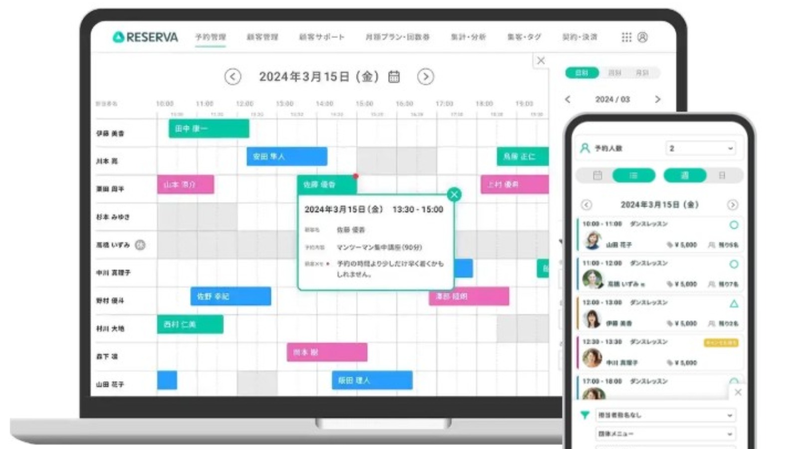 「RESERVA(レゼルバ)」は、ビジネスのすべてを自動化・効率化する国内シェアNo.1の予約システムです。官公庁や地方自治体、教育機関、大手企業から個人事業主まで、あらゆる運用方法に対応。世界85カ国以上で利用されており、導入企業社数は35万社以上。年間利用者数は3,000万人を誇ります。 誰でも簡単に無料で予約サイトが作成でき、予約受付→決済→顧客管理→集客まで、RESERVA1つで完結します。100種類以上の豊富な機能に加え、ZoomやLINE、スマートロックなどの外部サービス連携も充実。RESERVAでビジネスの可能性がさらに拡がります。