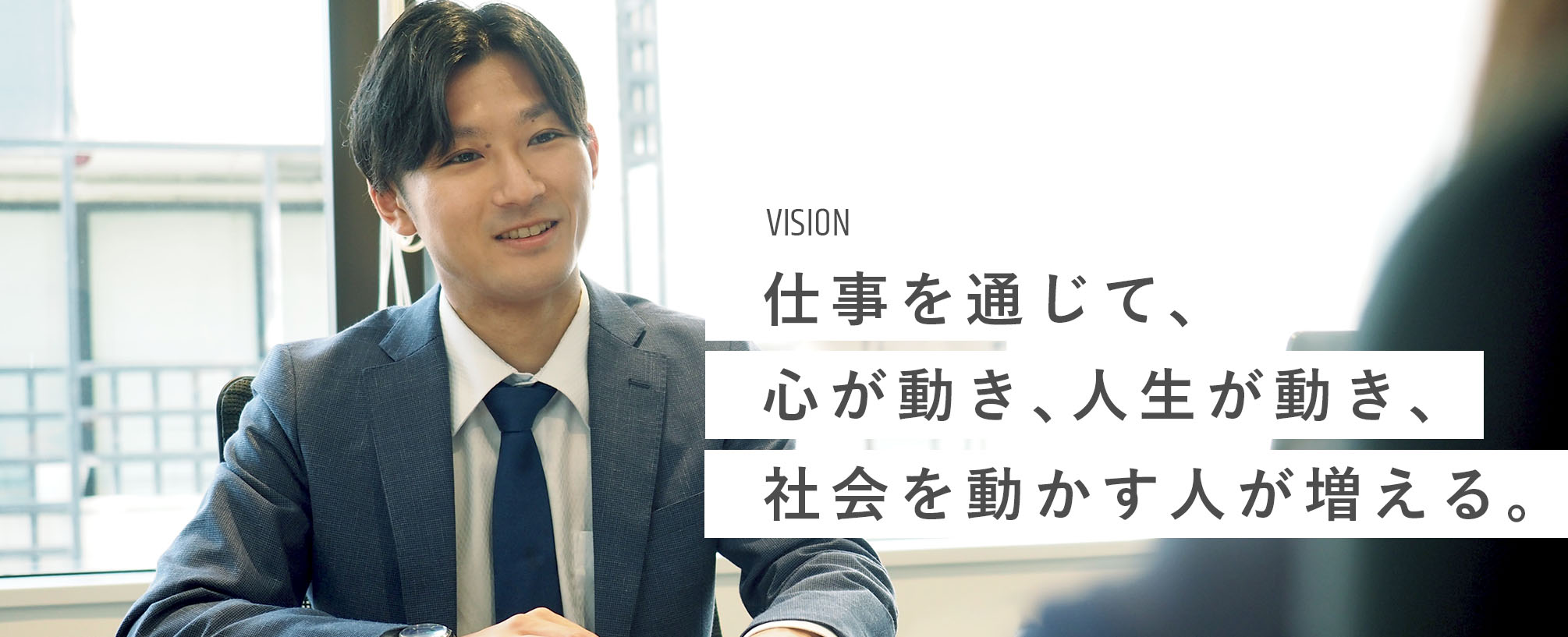 人は仕事にやりがいを感じ自分の力が発揮できていると、 イキイキと輝いている。 仕事とは、単に収入を得るためのものなのか。 私たちはそうは思わない。 仕事を通じて大きな目標にチャレンジし、 その目標を達成したときの充実感こそが人生の醍醐味だ。 そして仕事が充実していると休日も充実し、 人生をより豊かに過ごすことができる。 仕事を通じてより豊かな人生を。