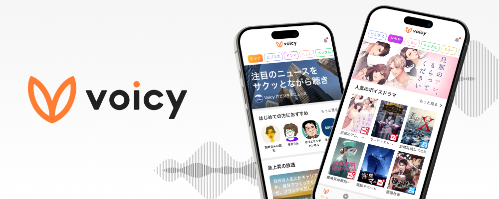 株式会社Voicyは、会員登録者数200万人超の音声プラットフォーム「Voicy」の開発運営を行っています。 ビジネスやライフスタイル、芸能、文学、語学、スポーツなど、幅広いジャンルにおけるトップランナーが音声配信をしており、質の高いコンテンツが強みとなっています。個人パーソナリティに留まらず法人活用も進んでおり、新聞社や出版社を始めとしたメディア、公的機関、一般企業まで、幅広いチャンネルと出会えるプラットフォームです。